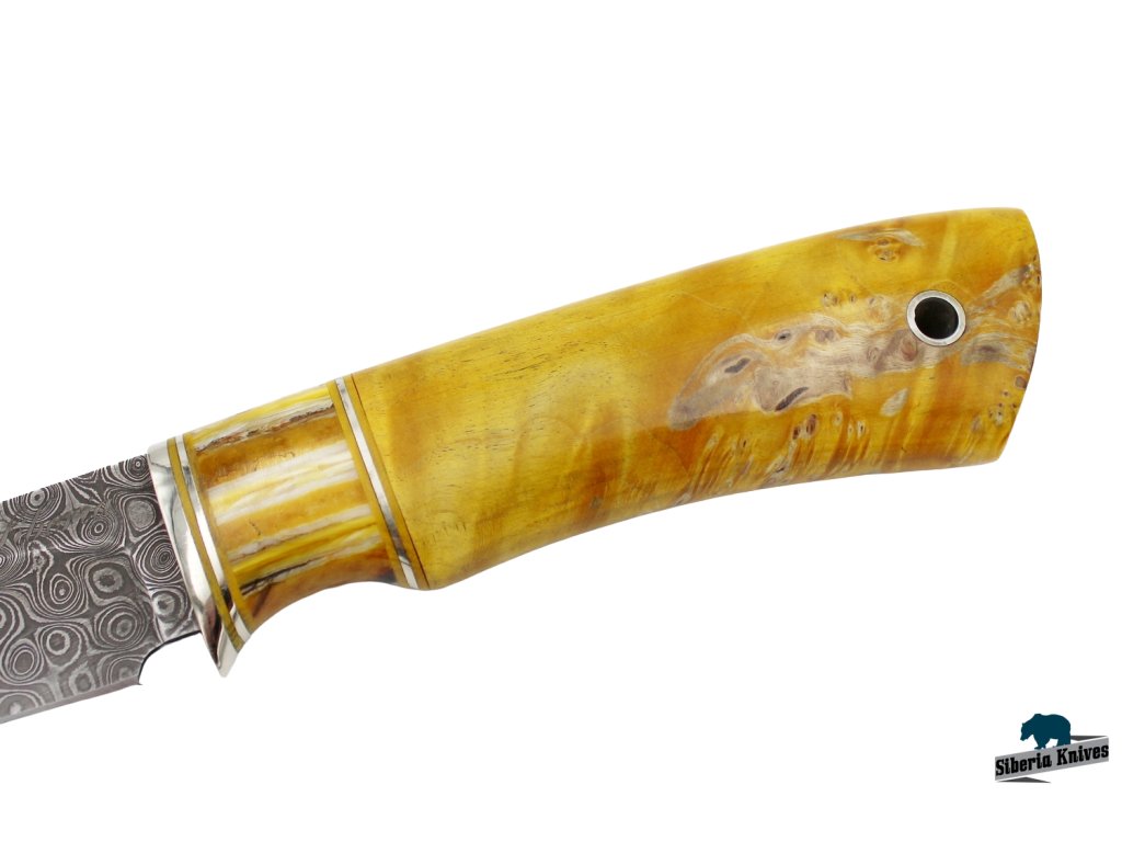 Damaškový lovecký nůž s mamutovinou - Mamut X2 Yellow