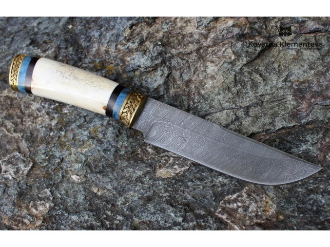 Lovecký nůž z damascenské oceli Dravec, Kovárna Klementěva