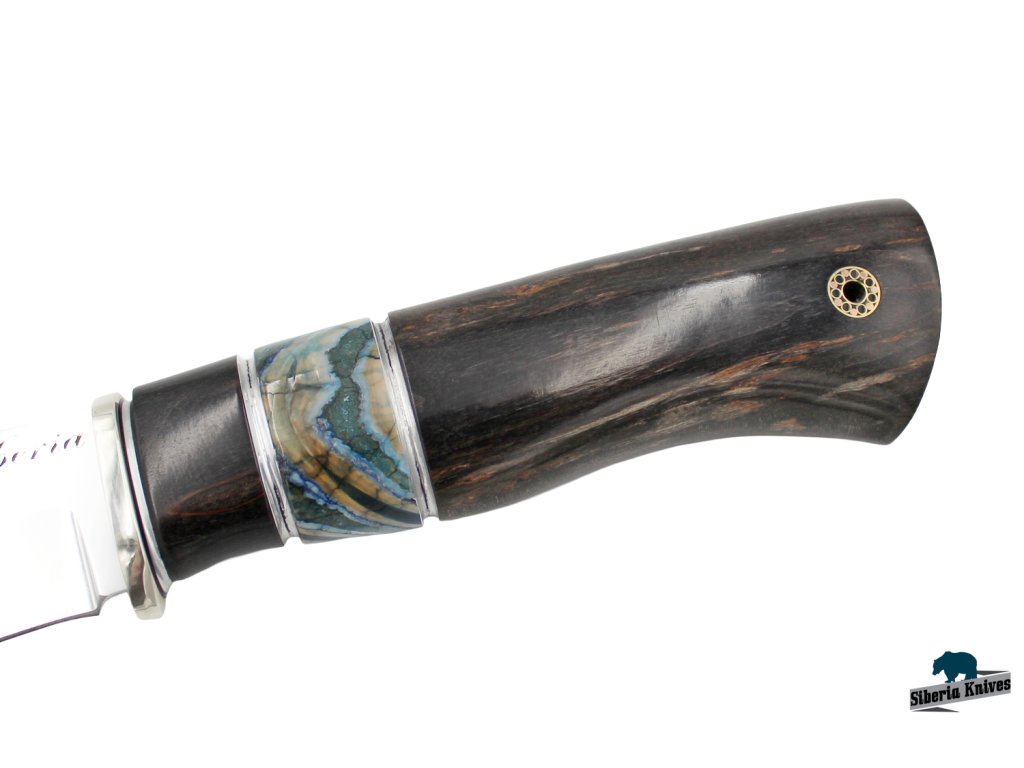 Rukojeť nože: alpaka, stabilizovaná karelská bříza, mamutí zub
