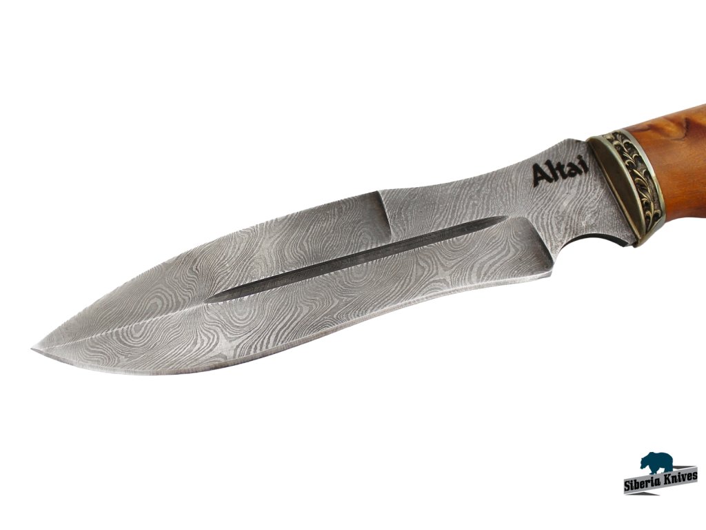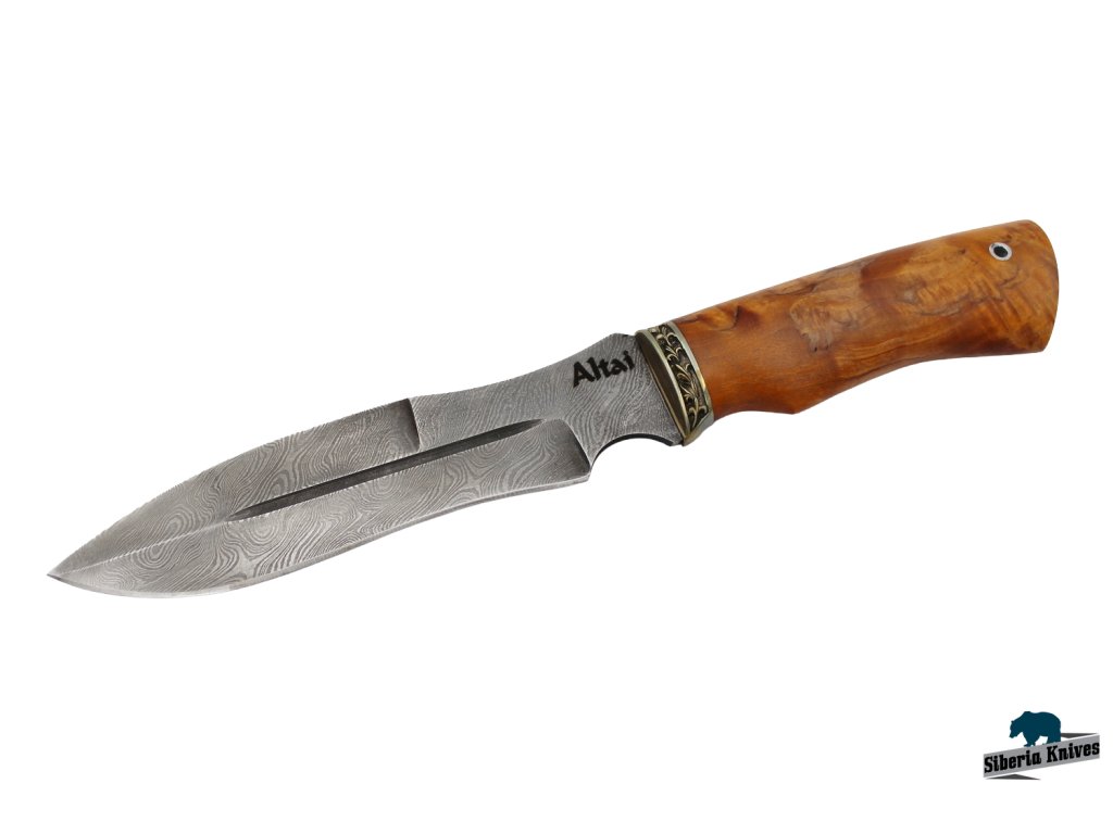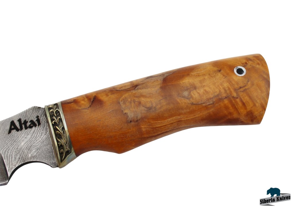 Nůž je vyroben za použití tradičních metod a veškeré jeho části jsou vyhotoveny ručně. V tomto případě se jedná o damaškovou ocel, která se vyznačuje vynikajícími řeznými vlastnostmi a houževnatostí. U nožů značky Altai Knives se používá k výrobě rukojetí pečlivě vybraných prémiových materiálů.