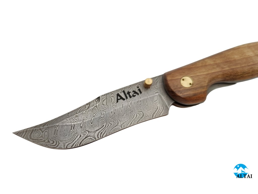 Nůž je vyroben za použití tradičních metod a veškeré jeho části jsou vyhotoveny ručně. V tomto případě se jedná o damaškovou ocel, která se vyznačuje vynikajícími řeznými vlastnostmi a houževnatostí. U nožů značky Altai Knives se používá k výrobě rukojetí pečlivě vybraných, prémiových, materiálů.