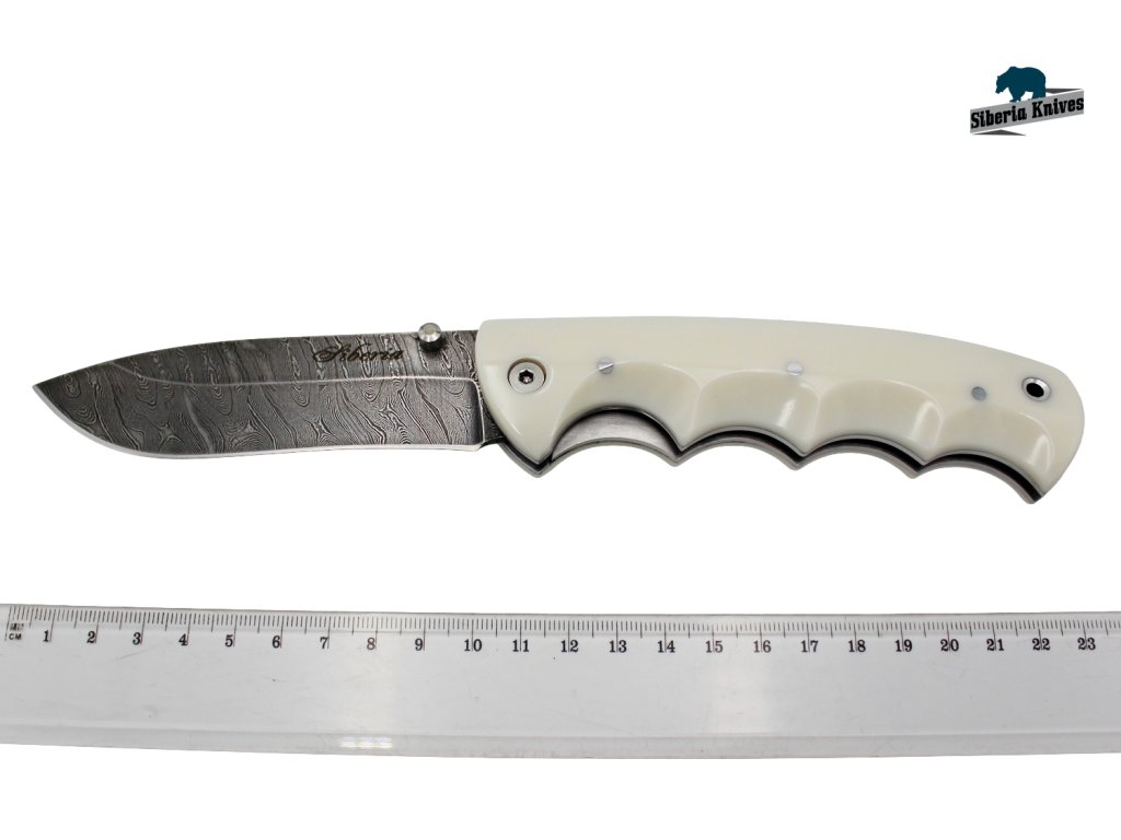 Zavírací ručně kovaný nůž z damascenské oceli Arctic značky Siberia Knives