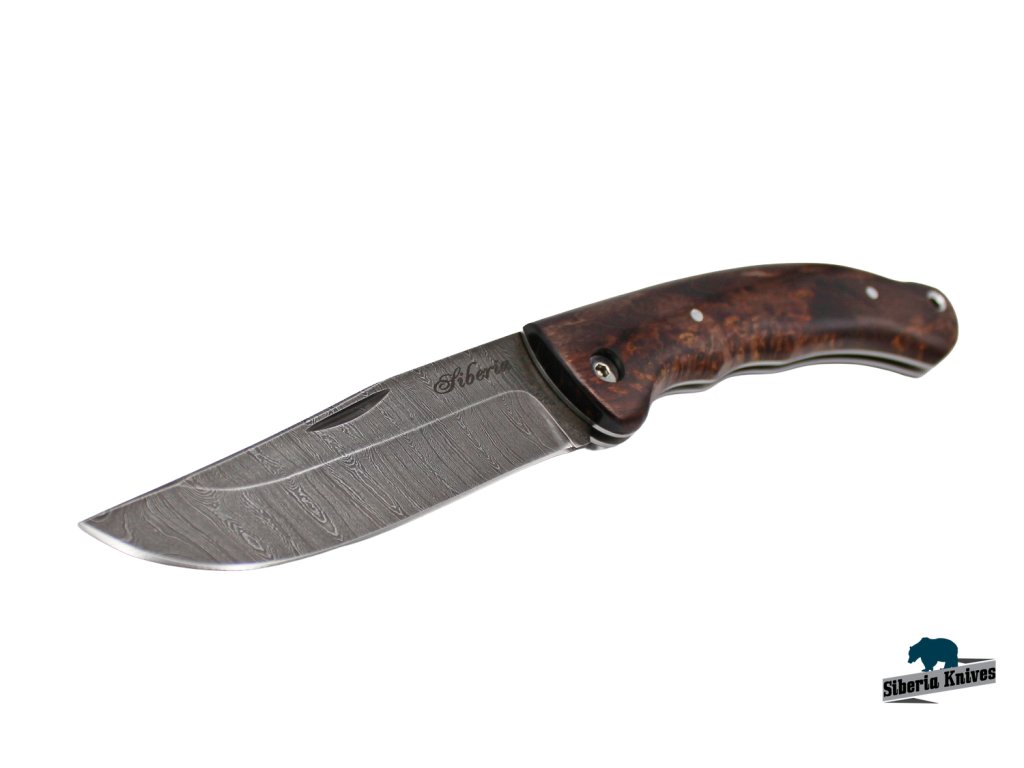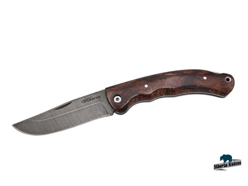 Zavírací ručně kovaný nůž z damascenské oceli Grizzly značky Siberia Knives