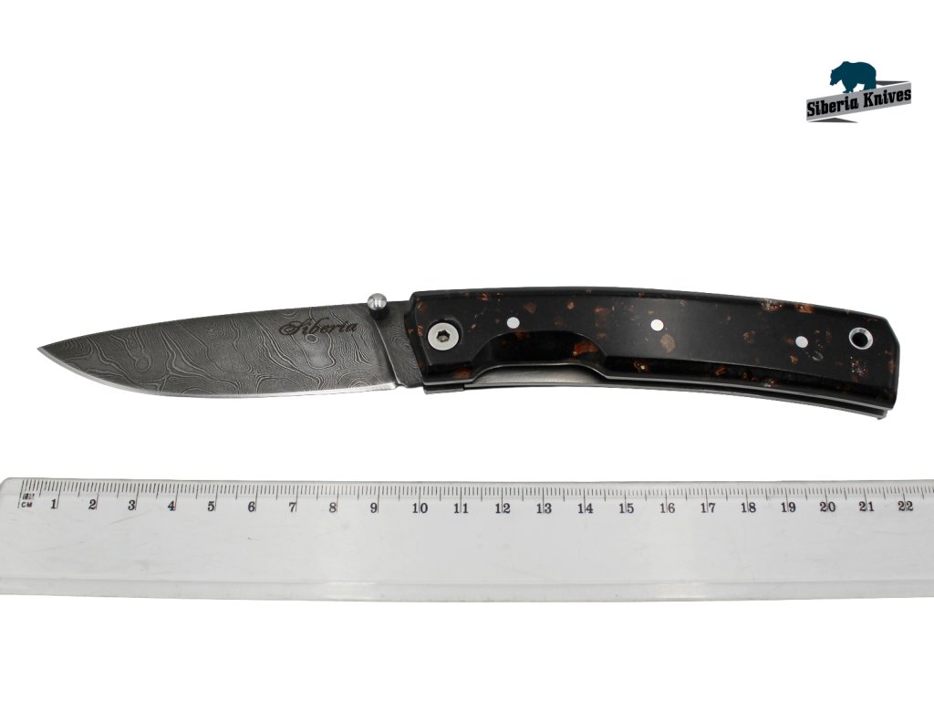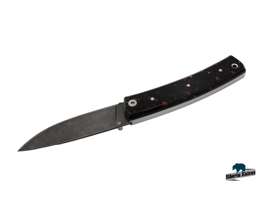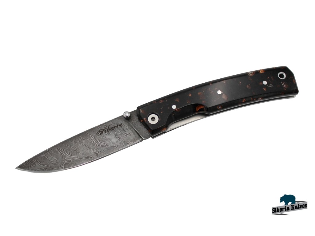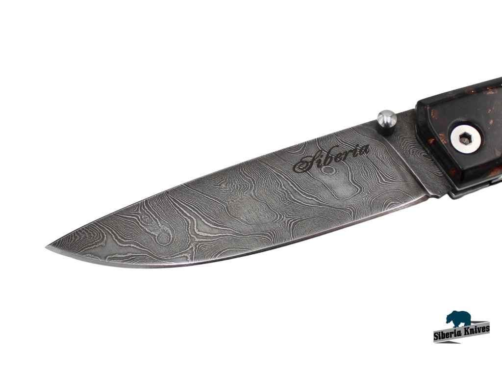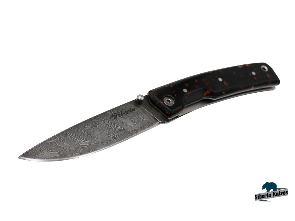 Zavirací ručně kovaný nůž z damascenské oceli Night sky značky Siberia Knives