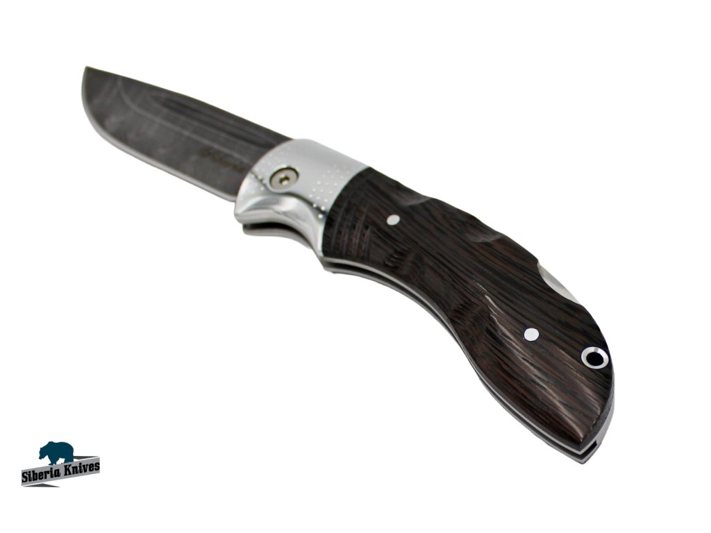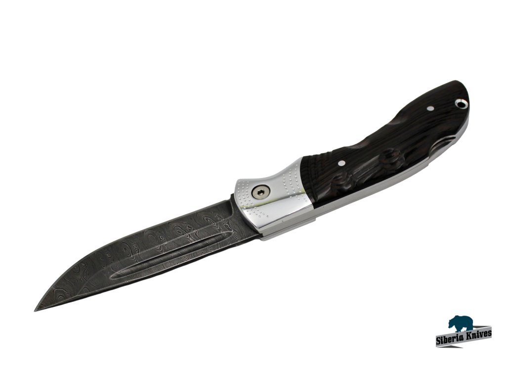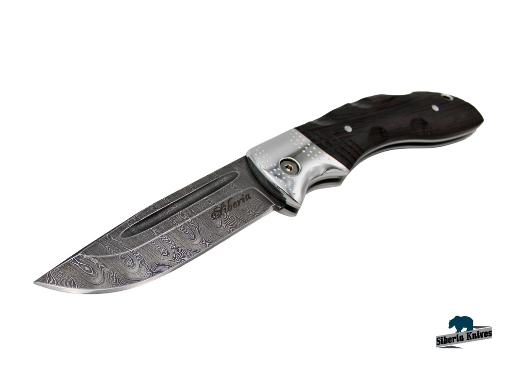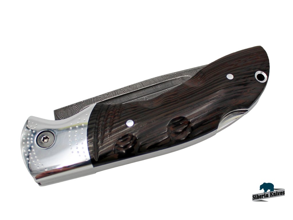 Zavírací ručně kovaný nůž z damascenské oceli Rosomák značky Siberia Knives